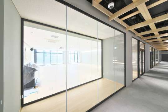 開放感あふれるスタイリッシュなガラスパーティションです。