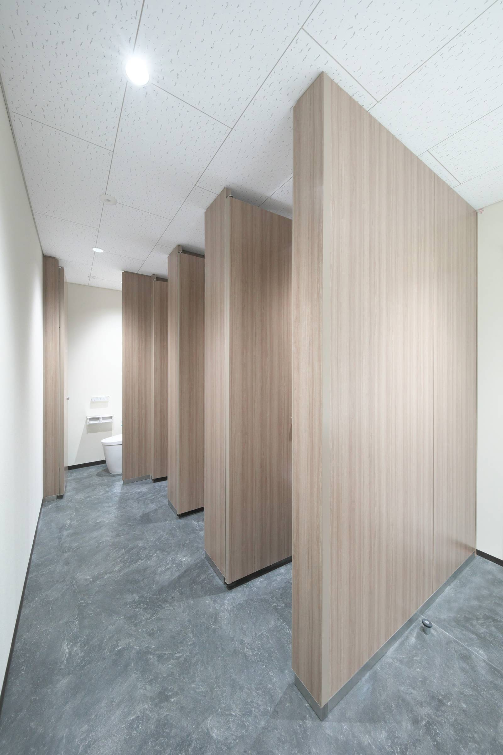 清楚に映えるアルミアールエッジのトイレブースです。