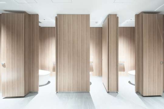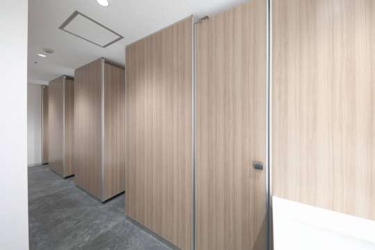 一体型シート巻きアールエッジのトイレブースです。 表面に凹凸のないフラットな仕上がりで高級感を演出します。
