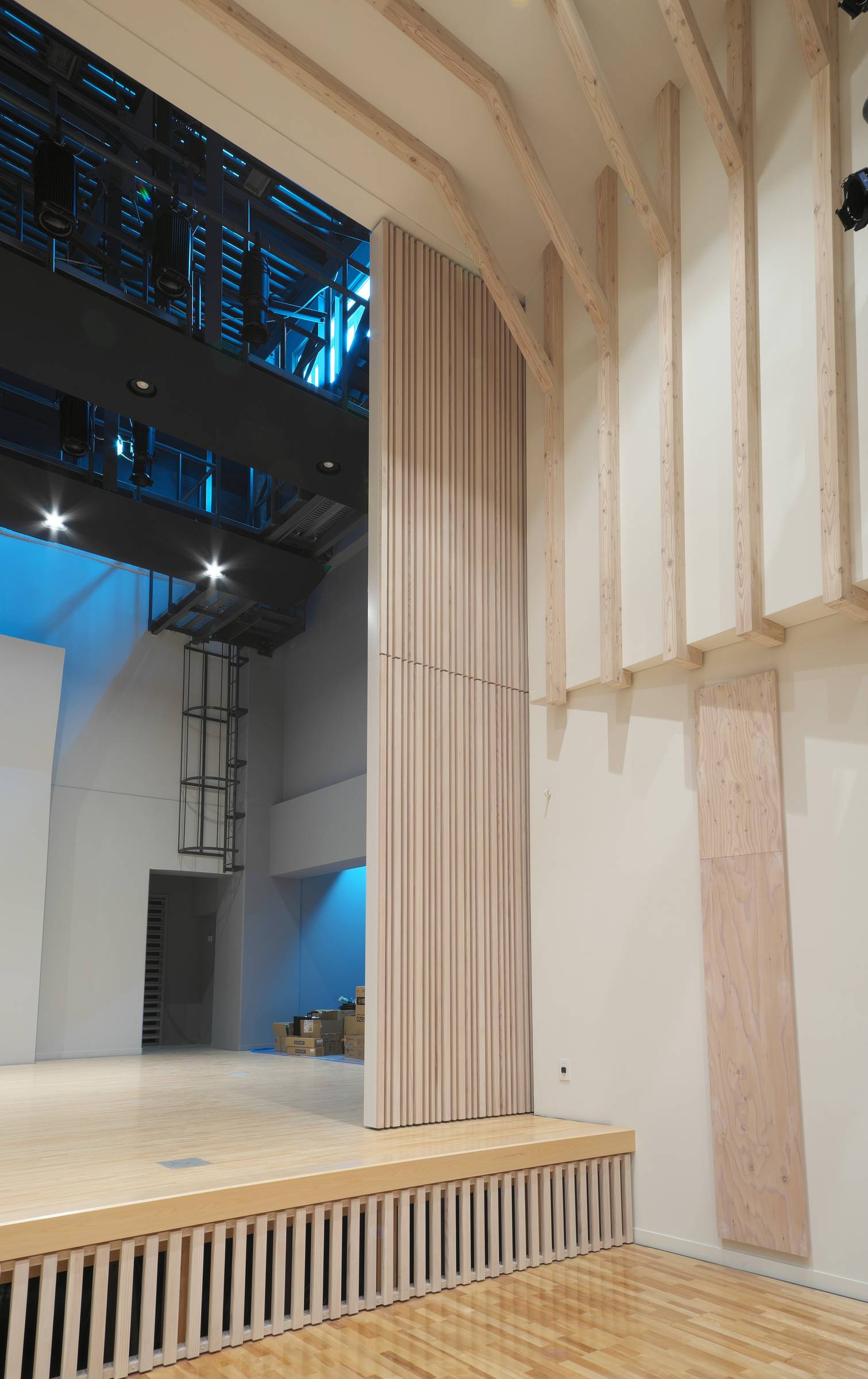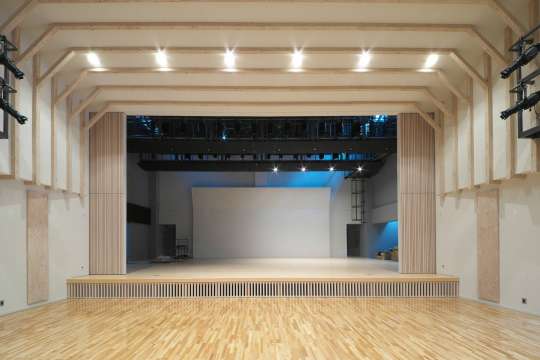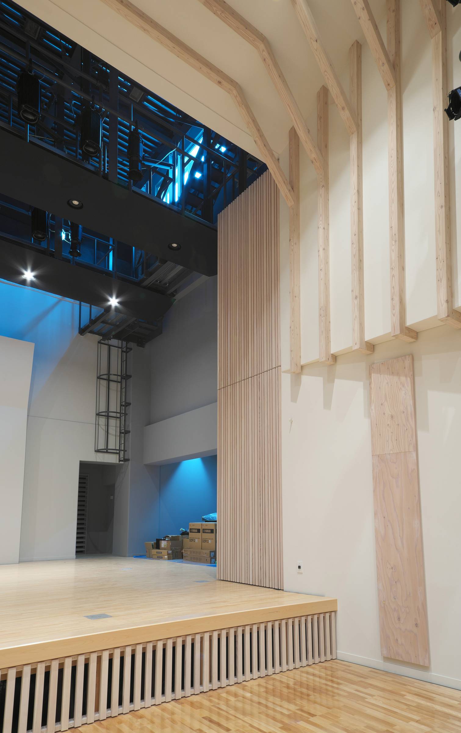 舞台袖に軸吊りパネルを採用しました。