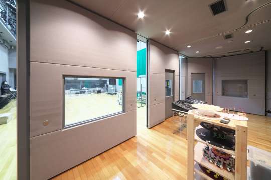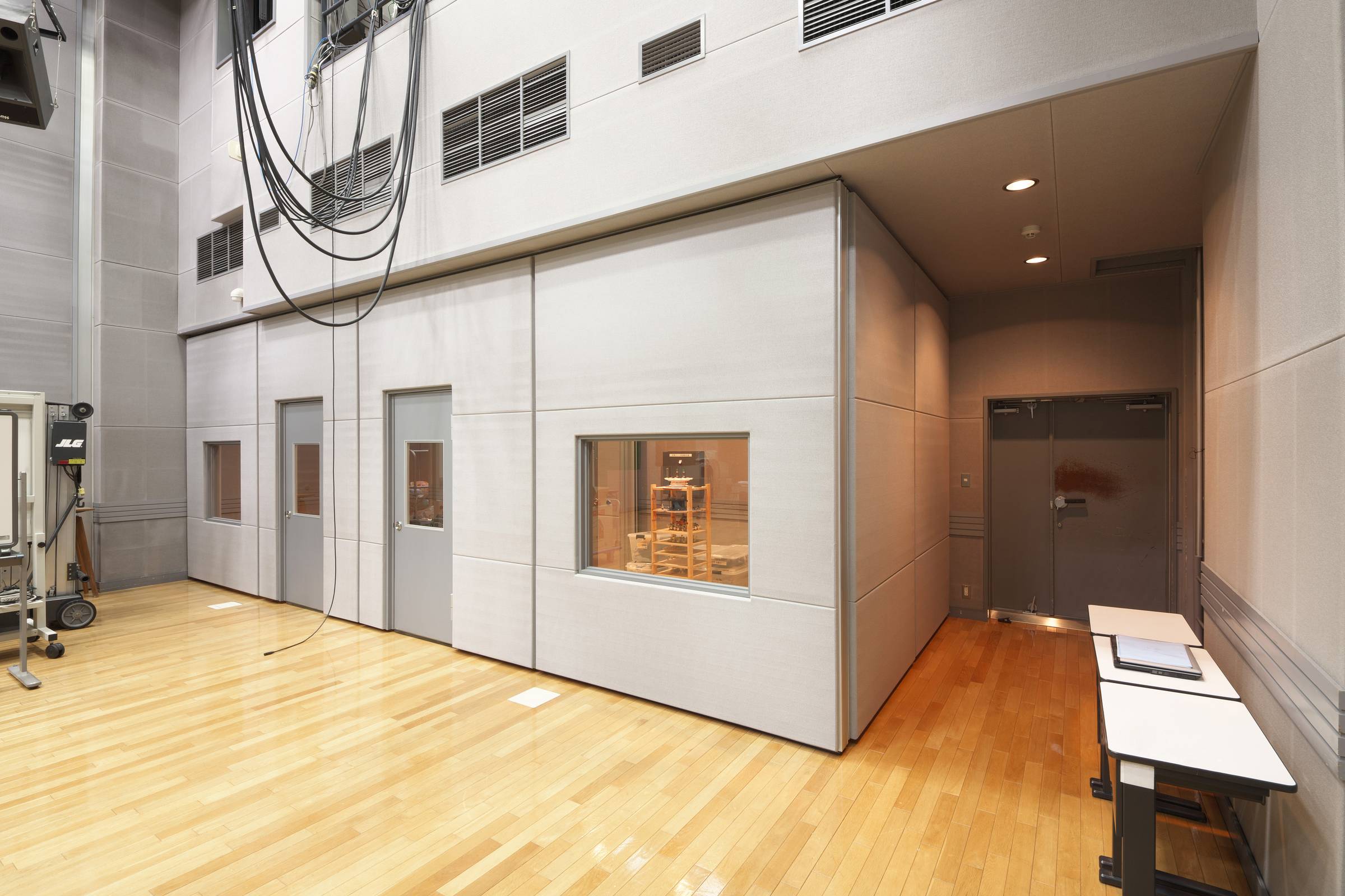 移動間仕切にドアや窓を組み込みました