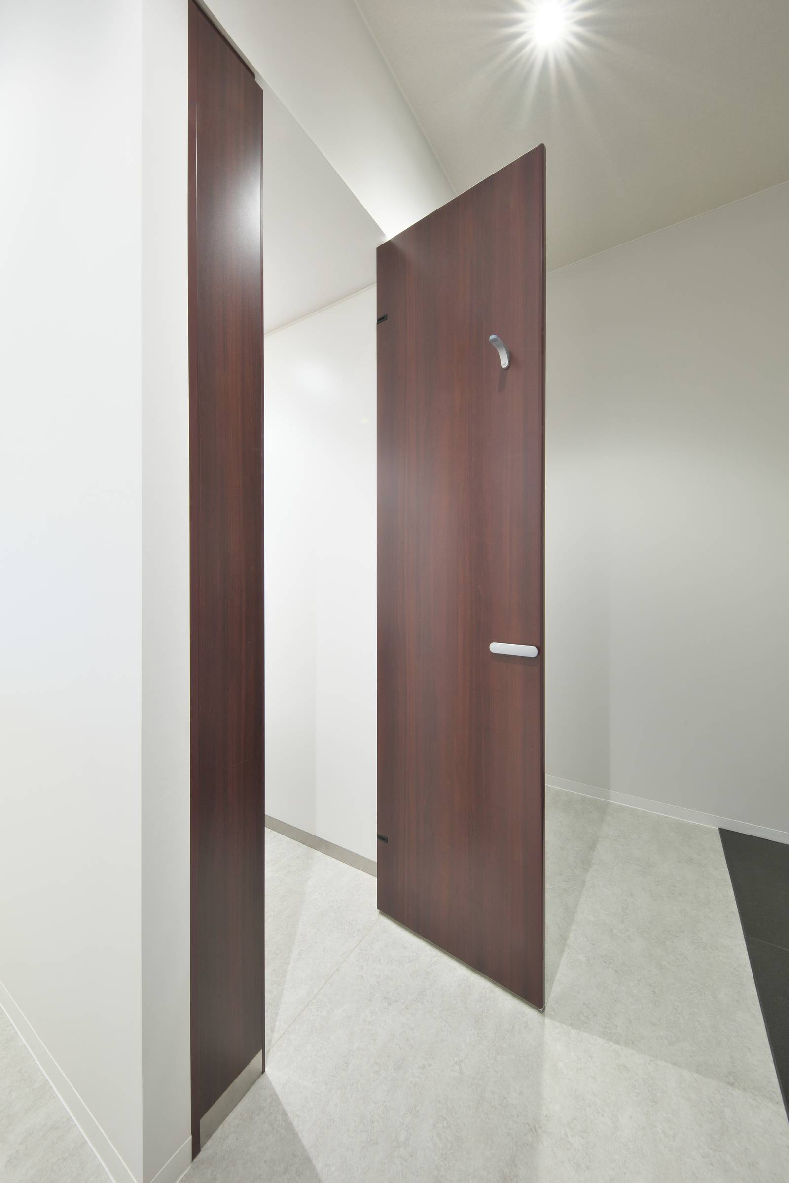 壁内にスッキリと内蔵された自閉式のハンガードアです