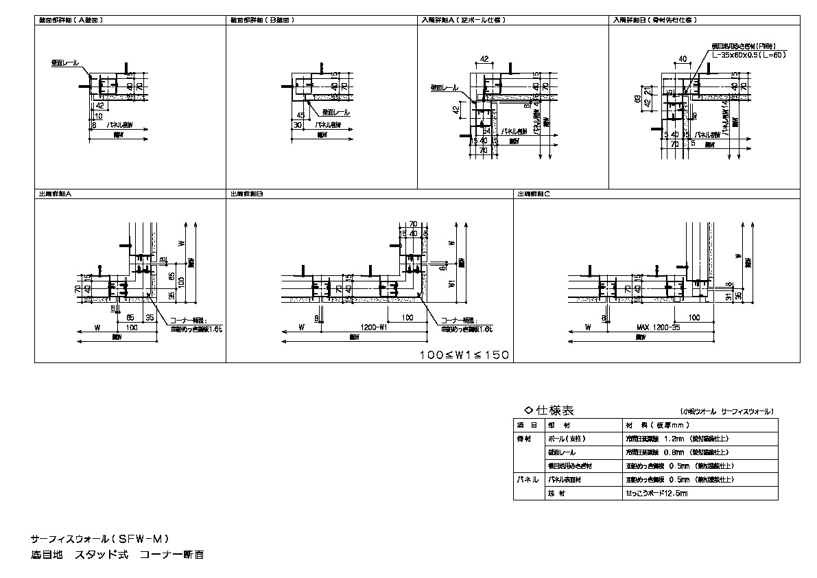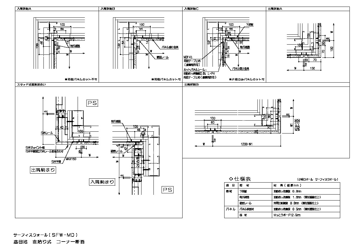 サーフィス(SFW-M) 底目地 スタッド式 SD枠入隅納まり