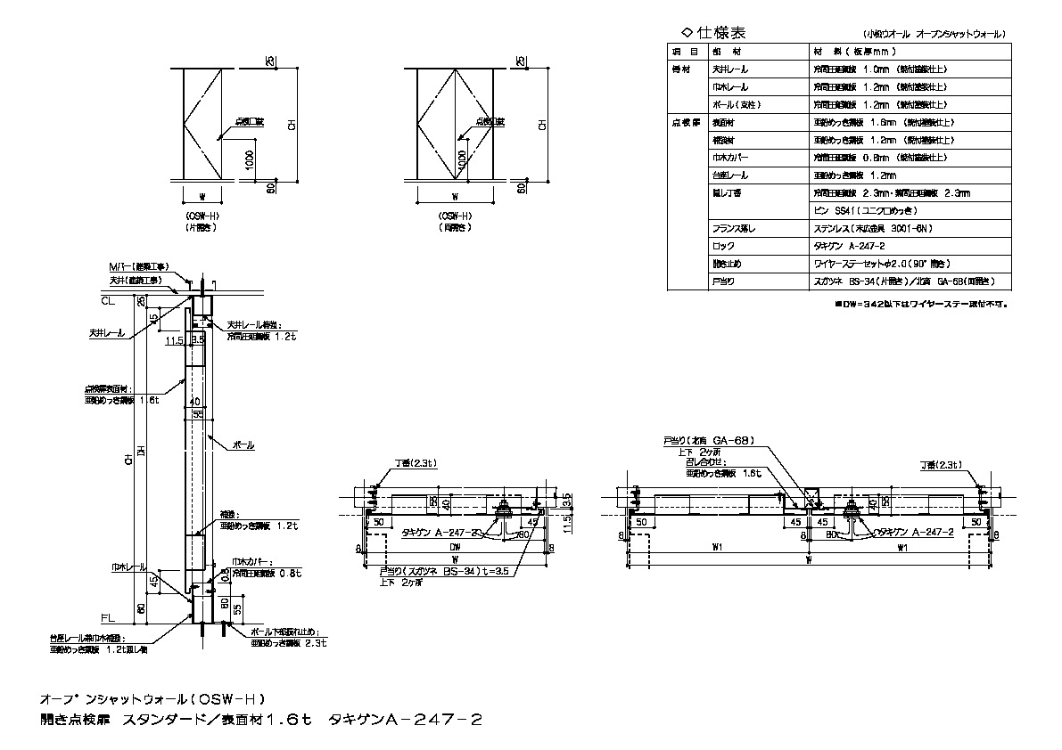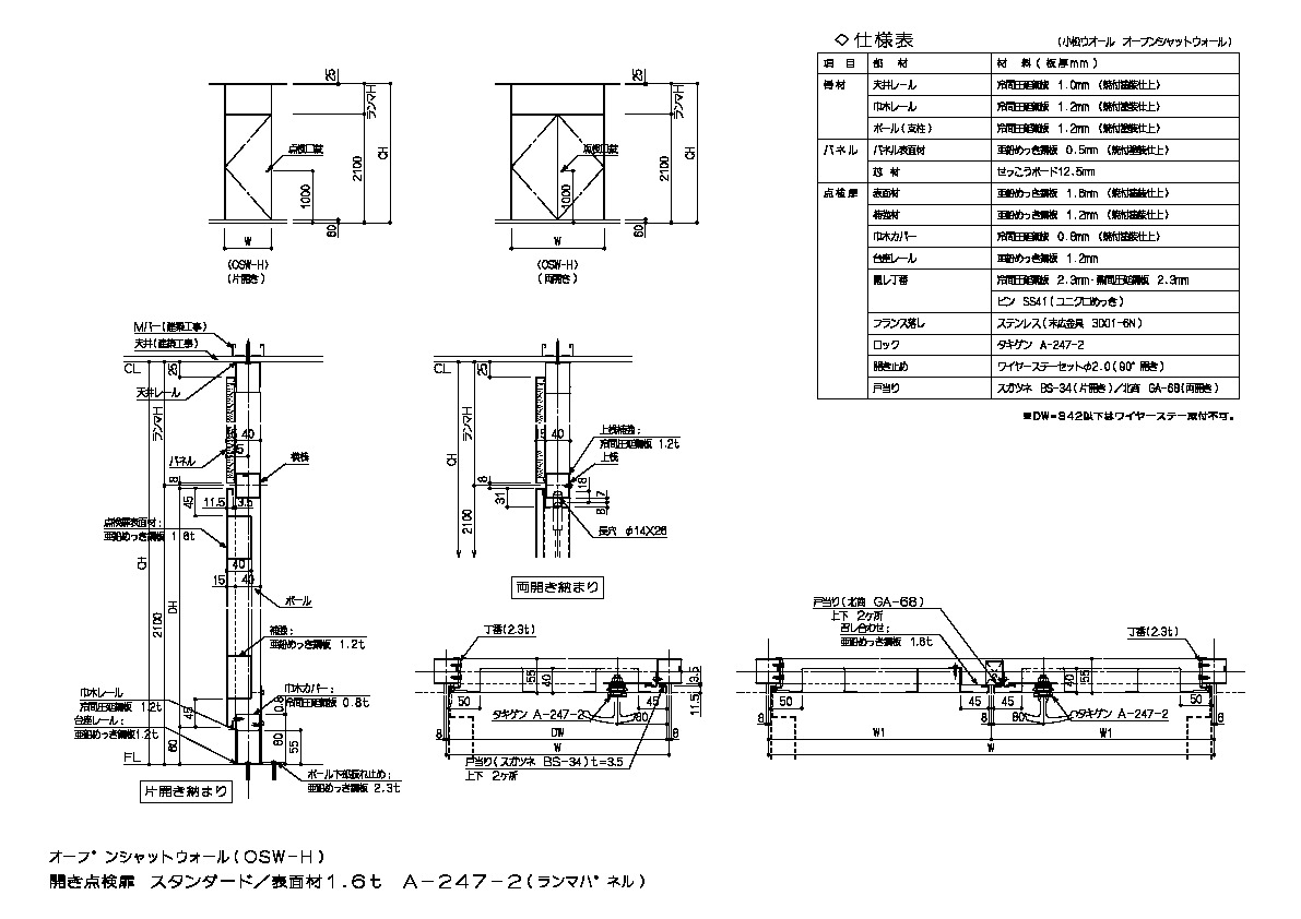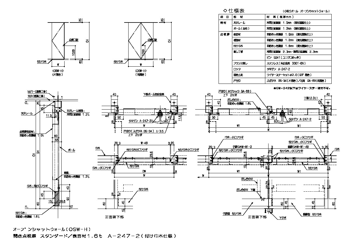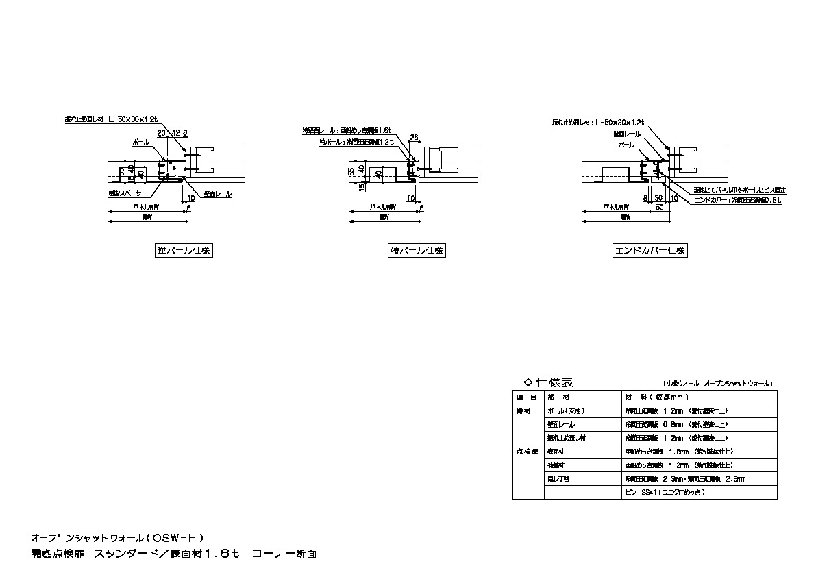 オープンシャット(OSW-H)開き点検扉 スタンダード コーナー断面
