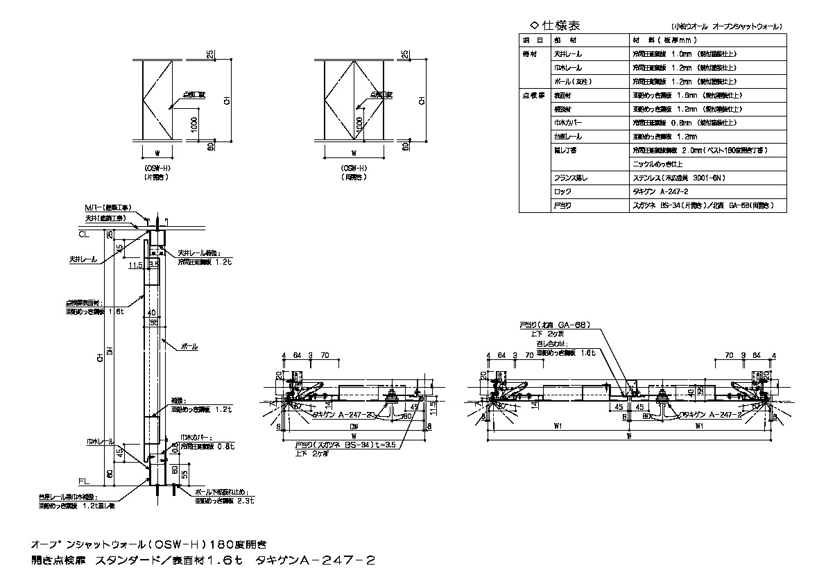オープンシャット(OSW-H)開き点検扉 スタンダード タキゲンA-247-2 (180度開き)