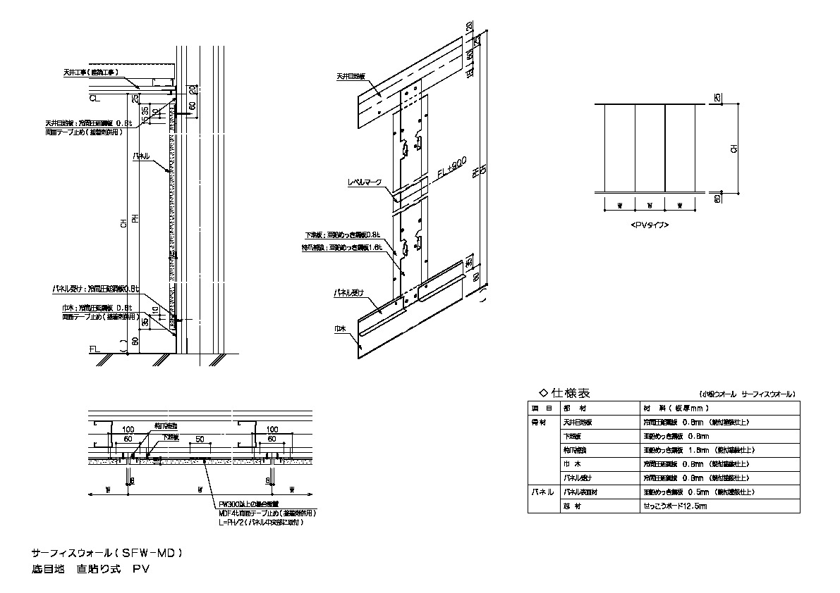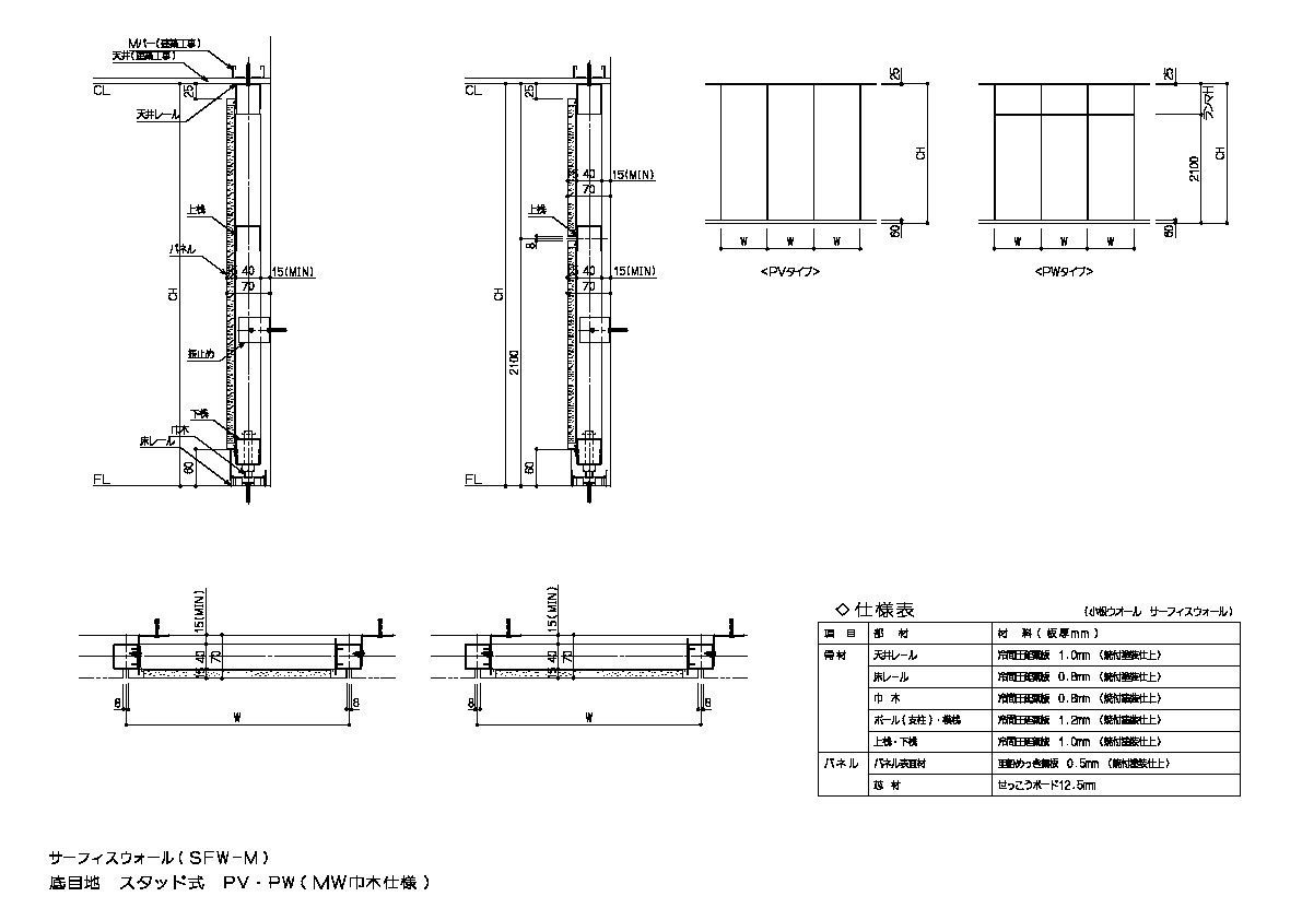 サーフィス(SFW-M) 底目地 スタッド式 PV・PW(MW巾木仕様)
