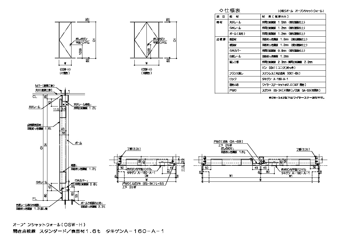 オープンシャット(OSW-H)開き点検扉 スタンダード タキゲンA-160-A-1