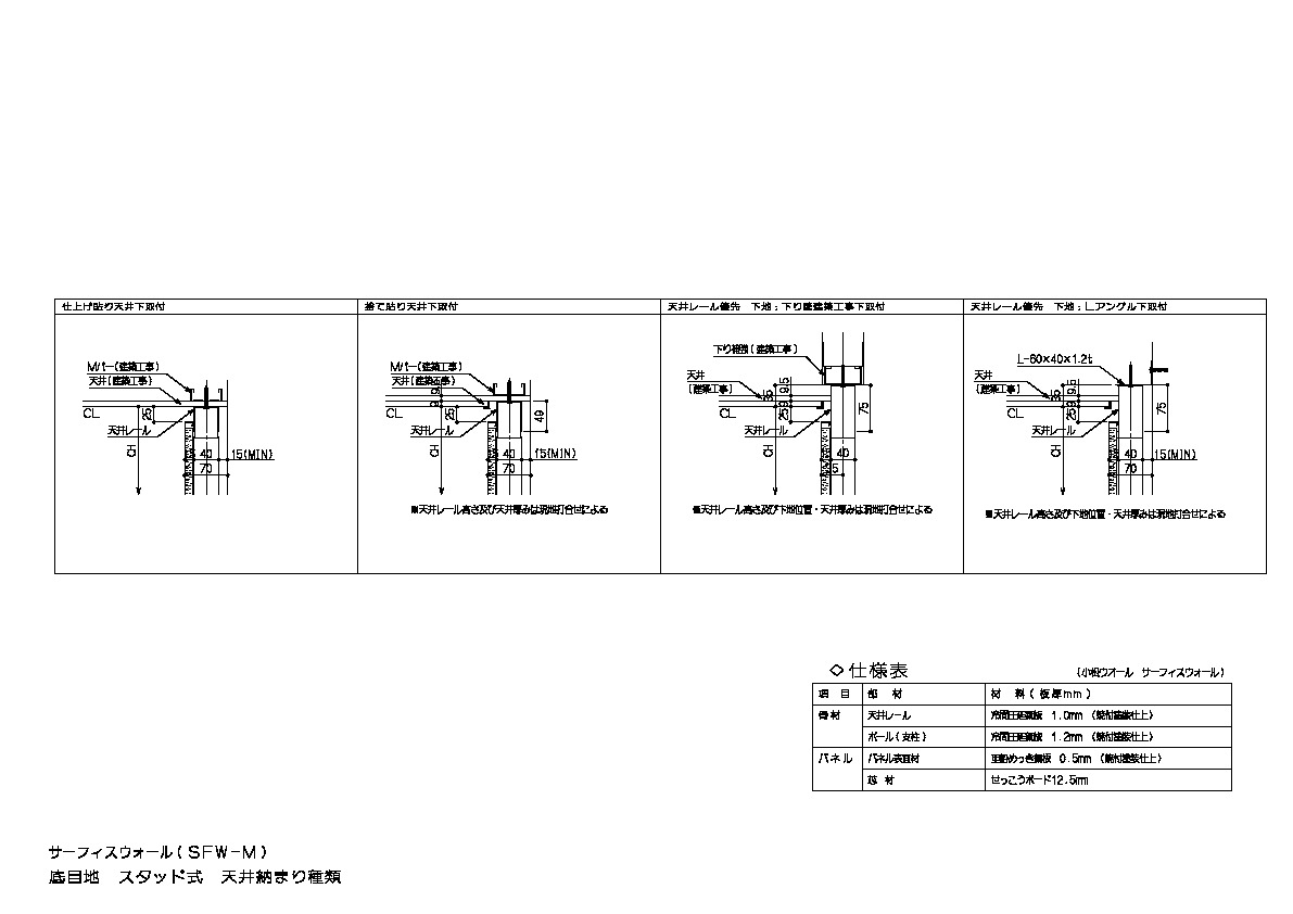 サーフィス(SFW-M) 底目地 スタッド式 天井納まり種類