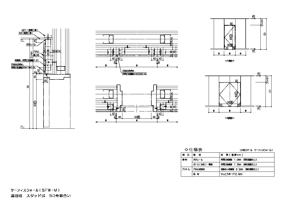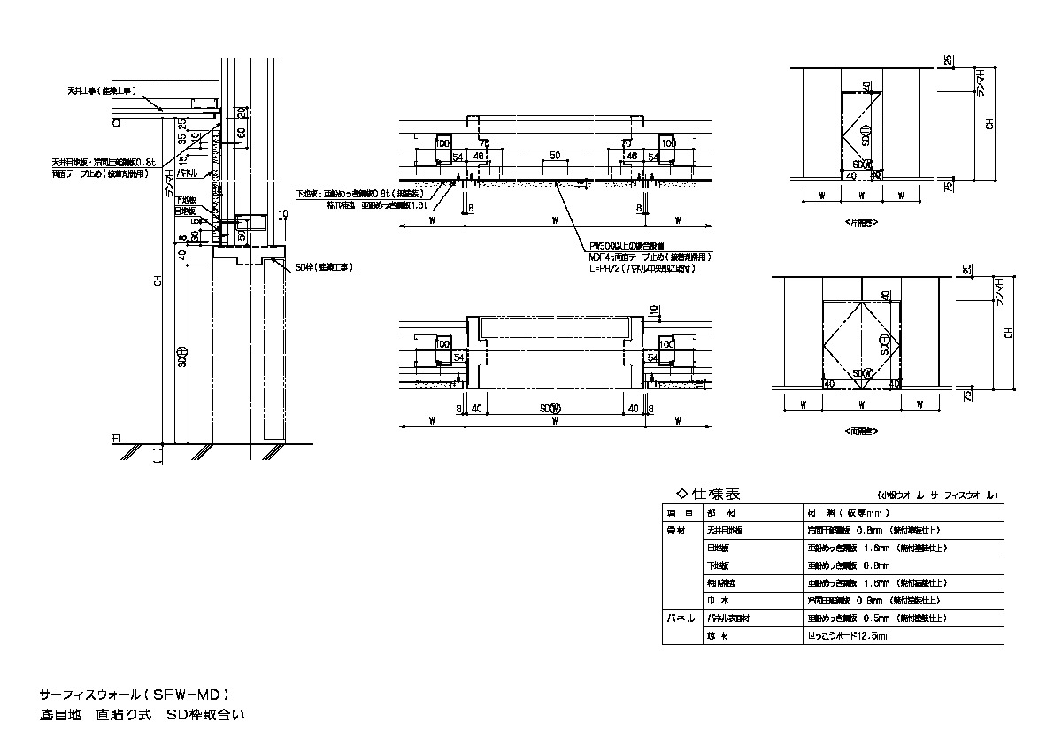 サーフィス(SFW-M) 底目地 スタッド式 SD枠取合い