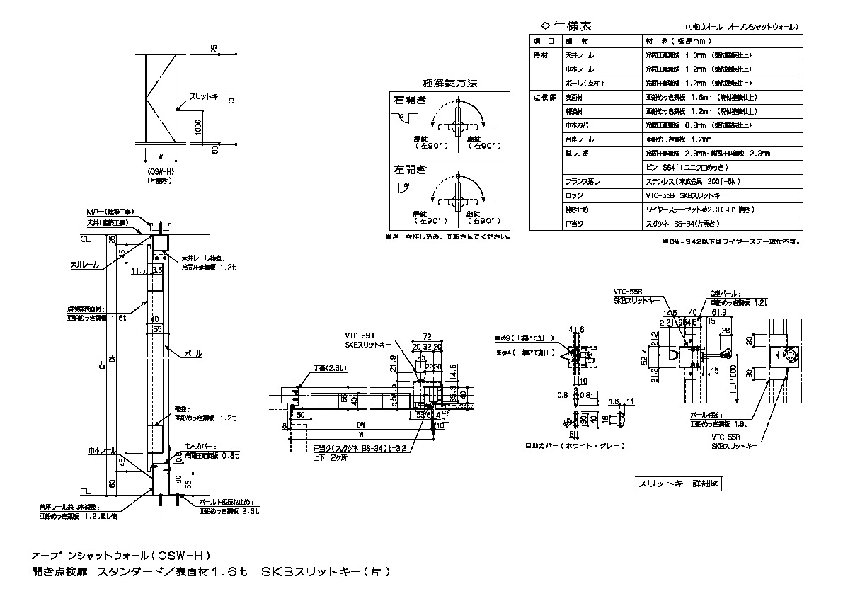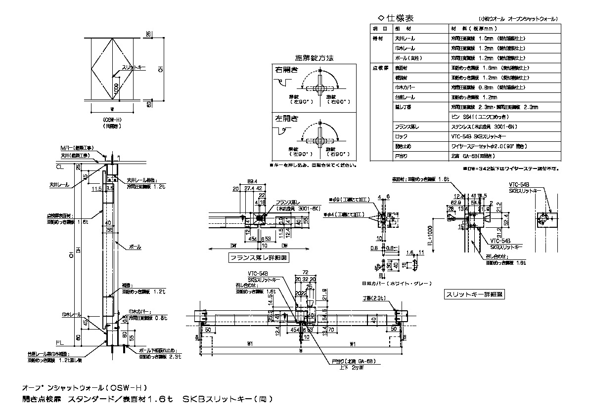 オープンシャット(OSW-H)開き点検扉 スタンダード SKBスリットキー片開き