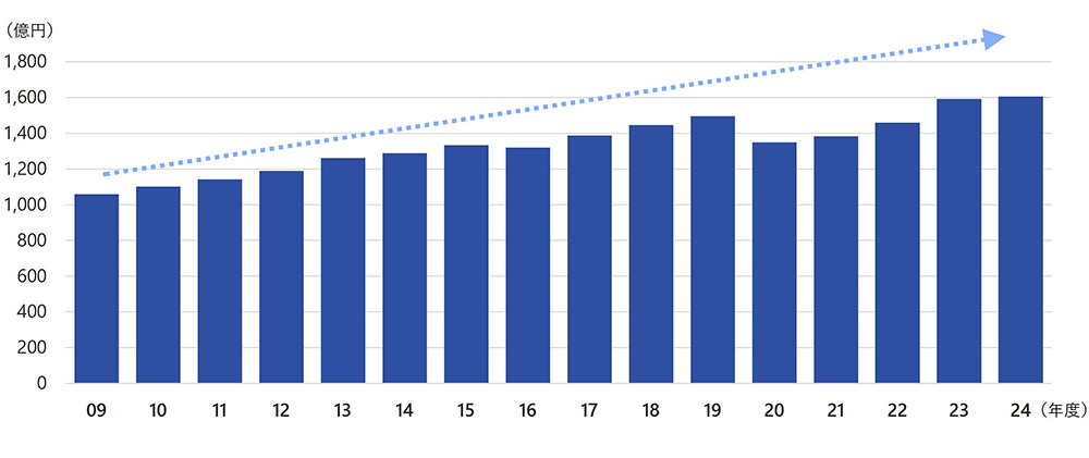 2024年度の間仕切市場の販売高は1,606億円。2020年度のコロナ禍による減少後は着実に回復し、過去最高となりました。