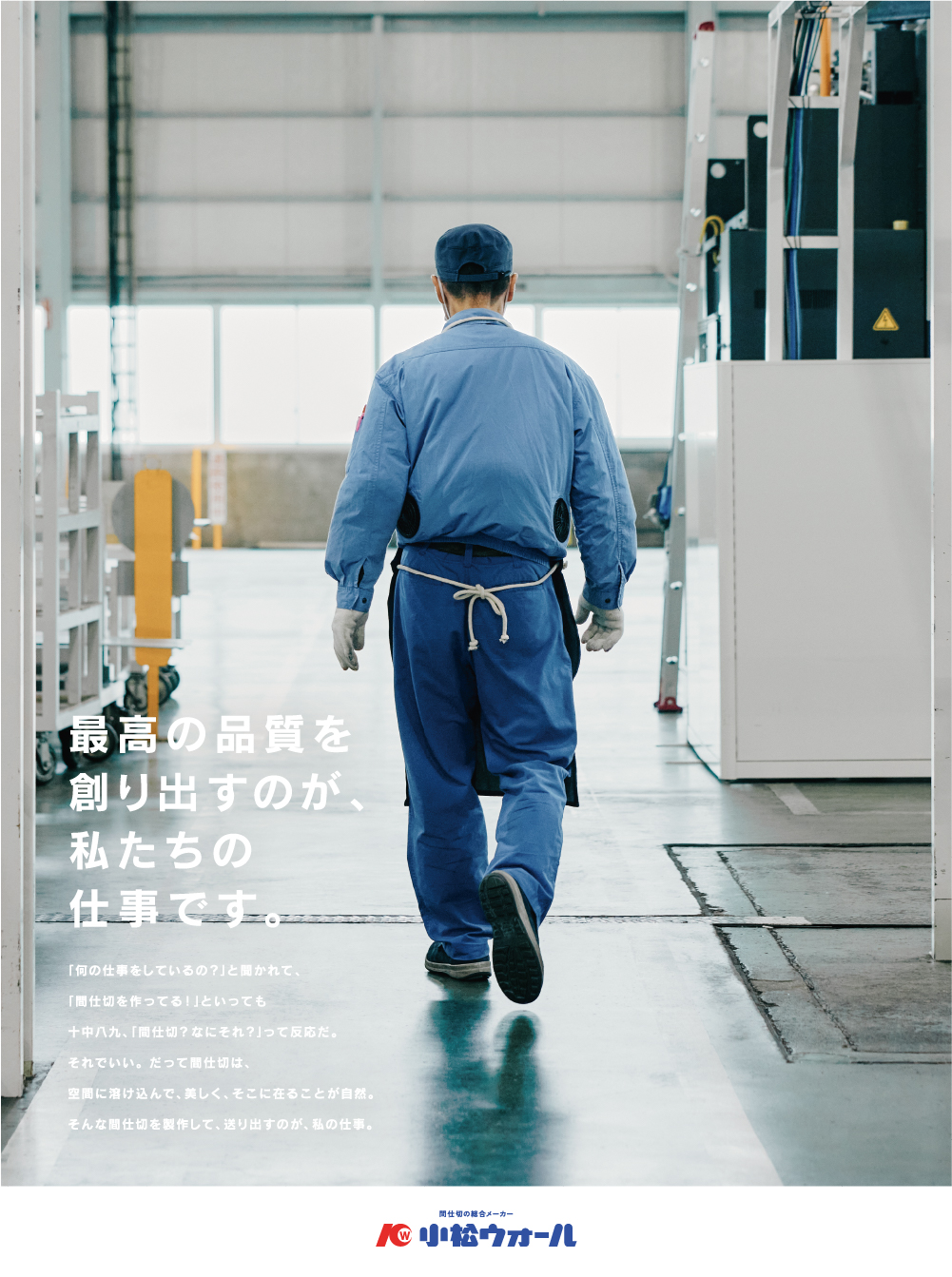 今回、金賞を受賞した広告(2023年4月28日 北國新聞朝刊掲載)について、「製造現場で働く社員の後ろ姿と簡潔なコピーが見事に合致している。品質にこだわる企業の姿勢がストレートに伝わる広告」として高い評価をいただきました。