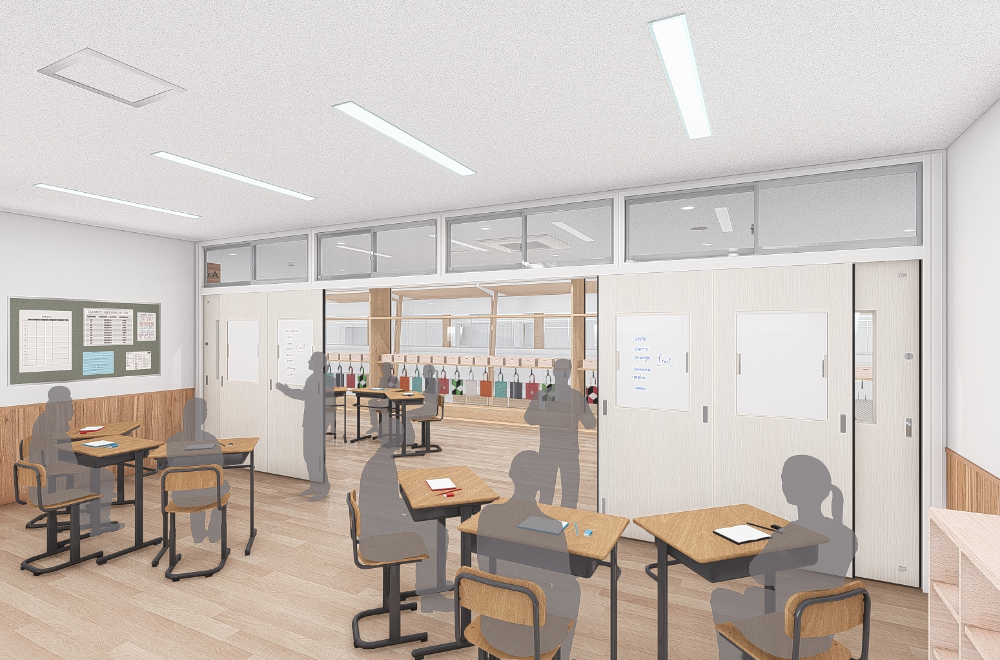 教室と廊下の段差もなくなり、子どもの転倒防止にもなります。