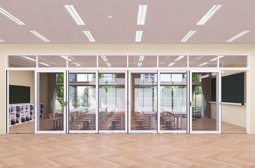 hirako(ヒラコ)は、学校向けを主とした大開口対応の多連引戸です。