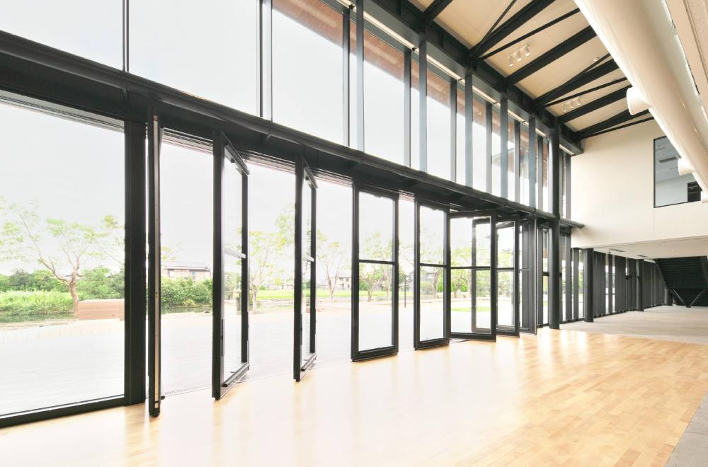 外部サッシ同様の意匠をもった屋外用ガラススライディングウォールです。