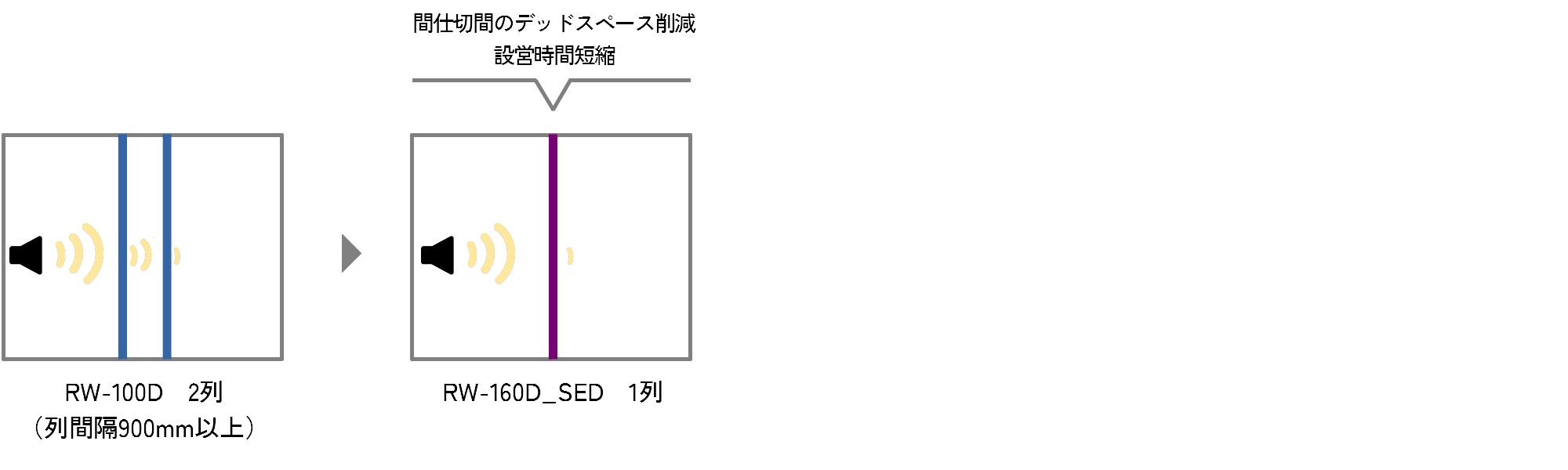 ・1列で、2列仕切り(RW-100D)と同等の遮音性能