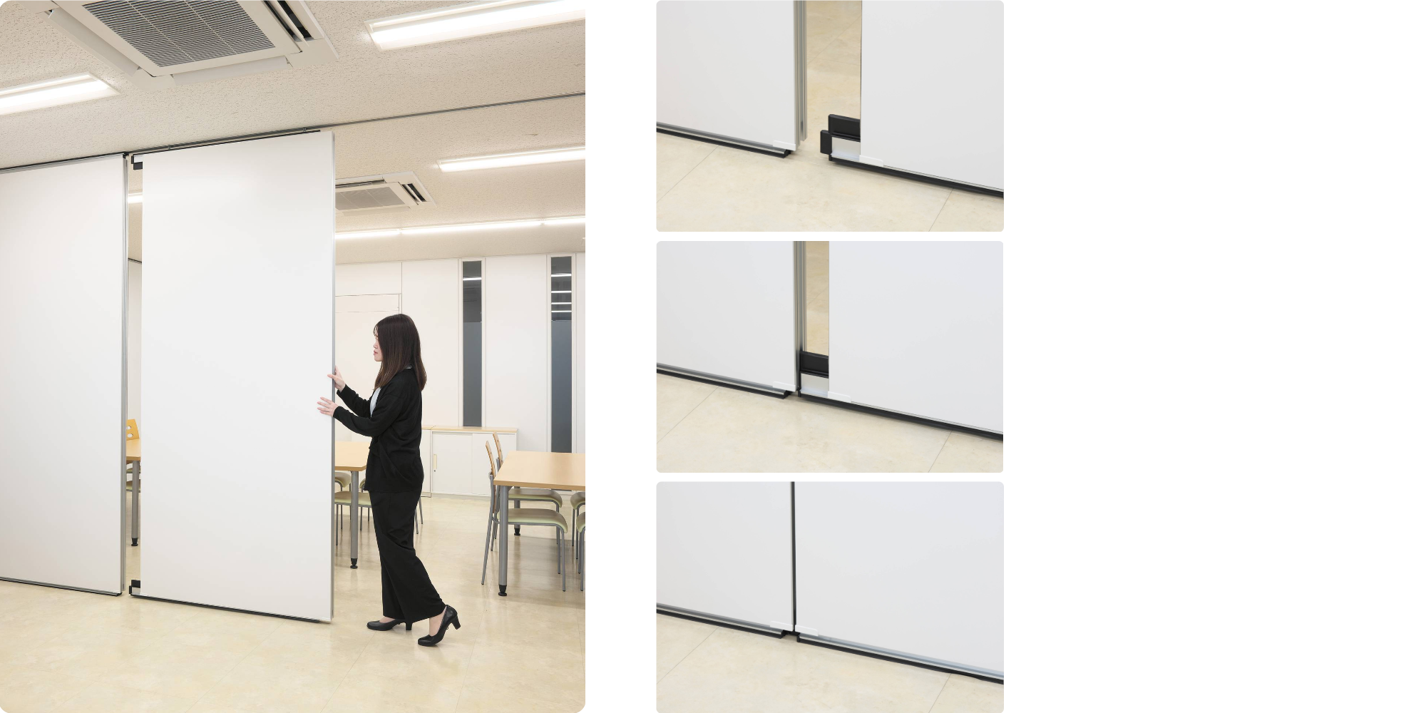 先頭・中間パネルは、押すだけで天井・床にしっかり圧着※。