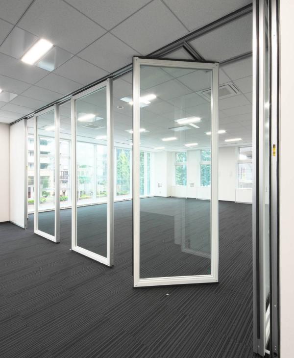動かせるガラス間仕切で、開放的な空間をデザイン