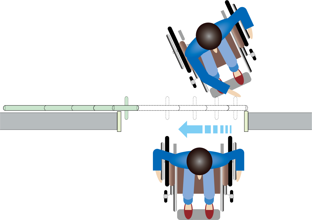 開き戸とは異なり、開閉時にドアの操作と車いすの操作を同時にする必要がなく、