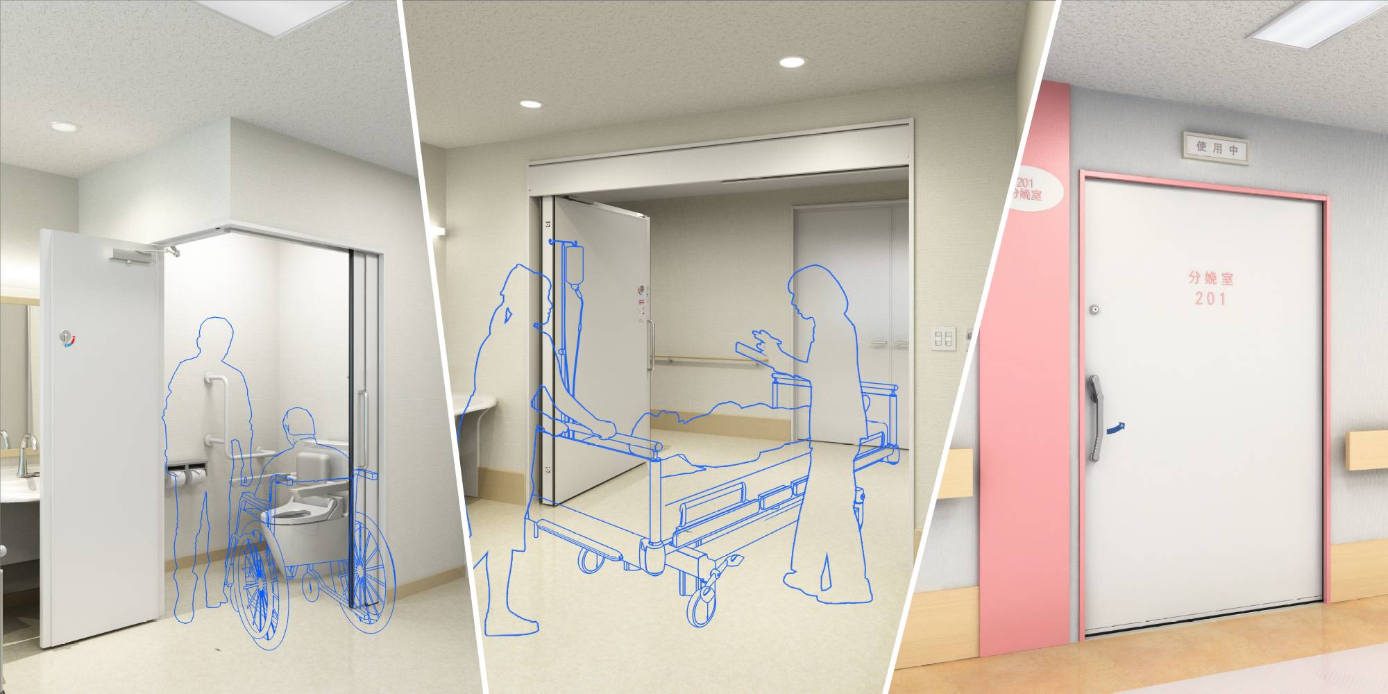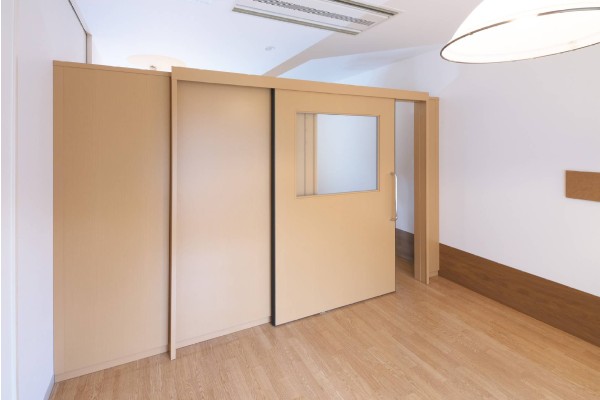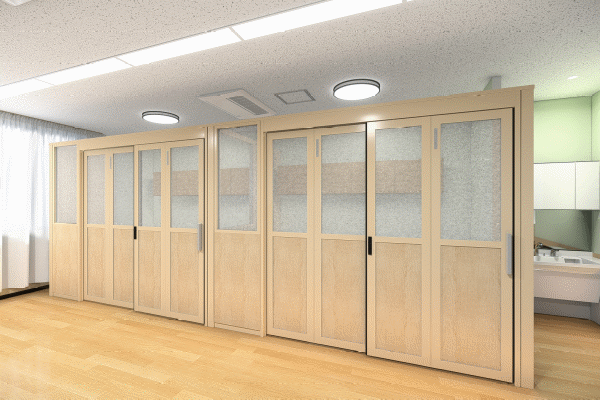 通常は引き戸として使用し、必要に応じてコンパクトに折り畳み、