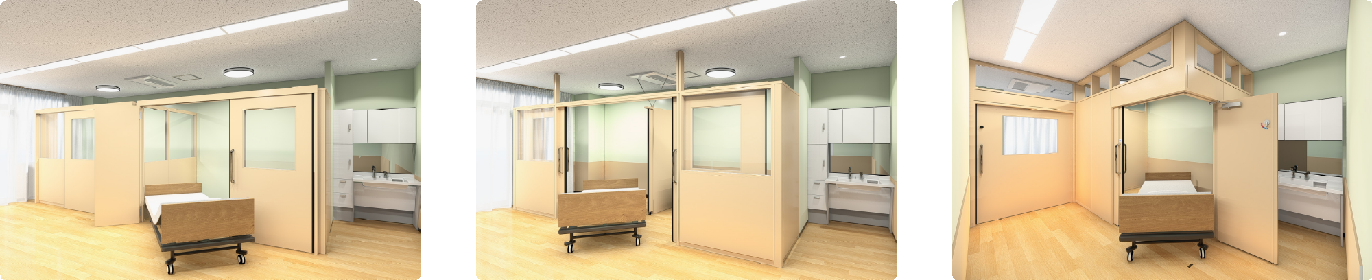 快適で安らぎある居室空間を 多床室の個室化に、自立型パーティションで対応