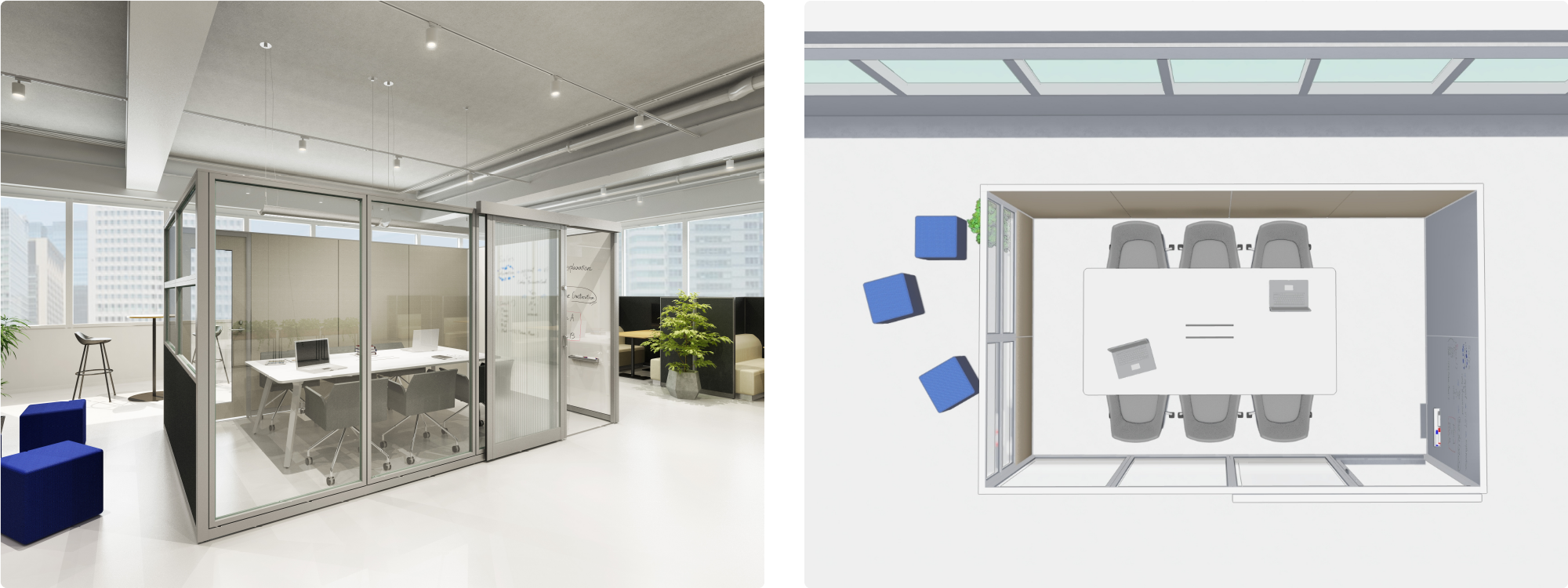 ホワイトボードパネルを活用し、省スペースでの打合せが可能です。
