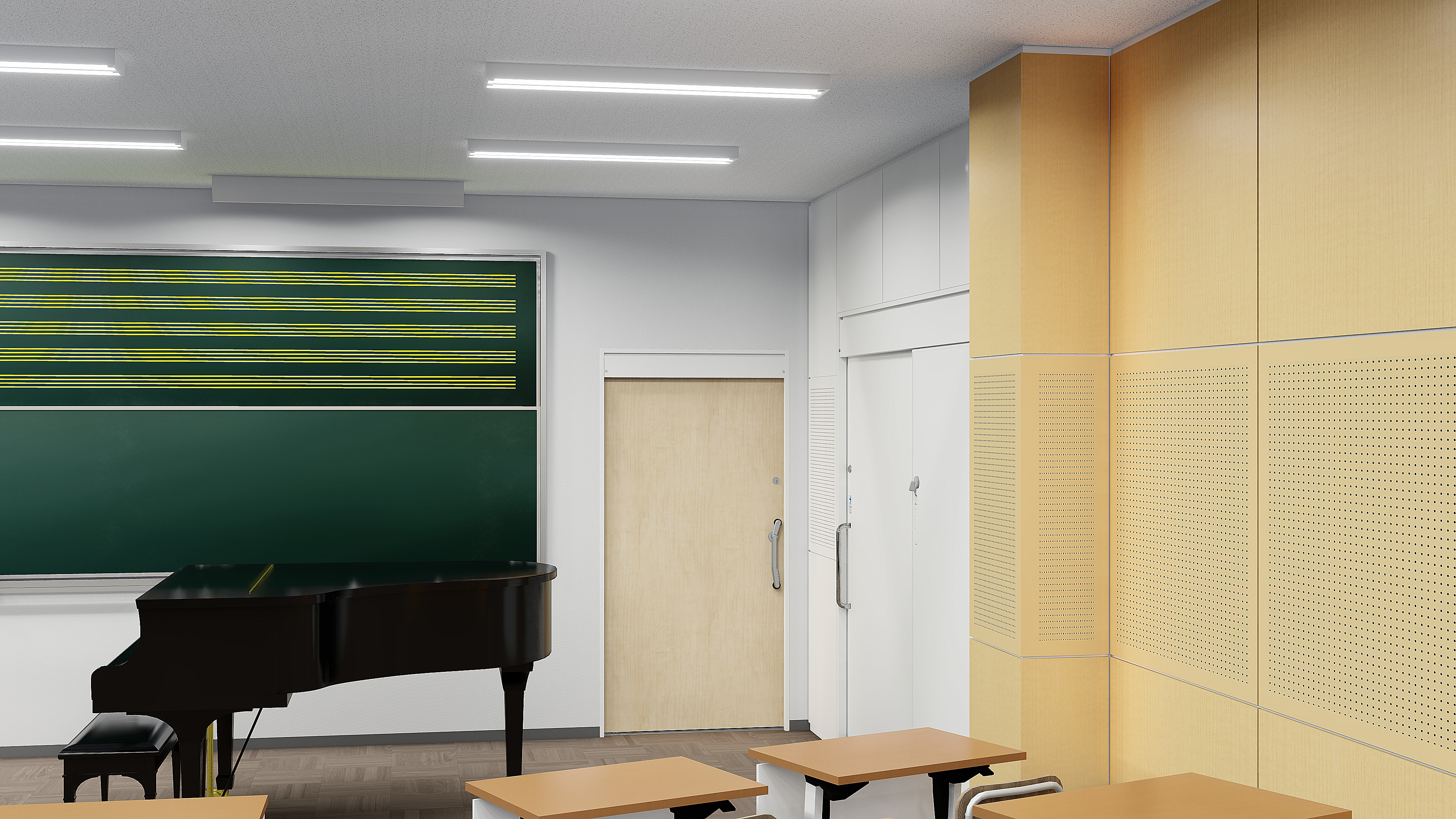 子どもたちの歌声や楽器の音色が部屋全体に響き渡る空間に。