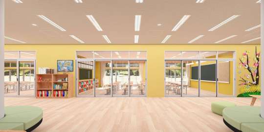 • 学校用間仕切鋼製軽量ドア学校向けを主とした大開口対応の多連引戸です